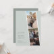 Apresentando nosso cativante "Capture Love" Casamento Salve o Cartão da Data, uma mistura encantadora de nostalgia e estética contemporânea de fotos. Este design único encapsula a essência de sua jornada juntos, convidando os entes queridos a marcar seus calendários para seu dia especial. O fundo exumenta um ar de atração vítrea, lembrando os clássicos trechos de cabine fotográfica que guardam memórias queridas. Tonalidades modernas de verde claro e sábio escuro formam a base dessa paleta de cores de tendências, evocando sentimentos de romance e desfasamento temporal. Essas matizes se entrelaçam graciosamente, criando um pano de fundo harmonioso que acentua o foco principal do cartão. No primeiro plano, um arranjo artístico de suas fotos de noivado favoritas tira o palco central. Cada quadro guarda um momento apreciado congelado no tempo, convidando convidados a compartilhar sua jornada alegre. O emparelhamento de fontes para o texto é uma personificação da elegância moderna. Os detalhes principais, como os nomes do casal e a data do casamento, estão lindamente escritos em uma fonte sofisticada de serifa. Isto complementa, contrastantemente, o texto de apoio, que emprega um tipo de letra caligráfica elegante. A combinação não só espelha a dualidade de sua história de amor, como também adiciona um toque de refinamento à design geral.