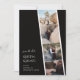 Apresentando nosso cativante "Capture Love" Casamento Salve o Cartão da Data, uma mistura encantadora de nostalgia e estética contemporânea de fotos. Este design único encapsula a essência de sua jornada juntos, convidando os entes queridos a marcar seus calendários para seu dia especial. O fundo exumenta um ar de atração vítrea, lembrando os clássicos trechos de cabine fotográfica que guardam memórias queridas. Tonalidades modernas de preto e branco formam a base dessa paleta de cores tendenciosas, evocando sentimentos de romance e desafinação. Essas matizes se entrelaçam graciosamente, criando um pano de fundo harmonioso que acentua o foco principal do cartão. No primeiro plano, um arranjo artístico de suas fotos de noivado favoritas tira o palco central. Cada quadro guarda um momento apreciado congelado no tempo, convidando convidados a compartilhar sua jornada alegre. O emparelhamento de fontes para o texto é uma personificação da elegância moderna. Os detalhes principais, como os nomes do casal e a data do casamento, estão lindamente escritos em uma fonte sofisticada de serifa. Isto complementa, contrastantemente, o texto de apoio, que emprega um tipo de letra caligráfica elegante. A combinação não só espelha a dualidade de sua história de amor, como também adiciona um toque de refinamento à design geral.