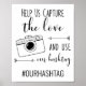 Esta placa de casamento é uma maneira divertida de encorajar seus convidados de casamento a usar sua hashtag ao postar fotos!