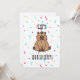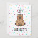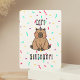 Cute capybara personalizada com cartão de aniversário de festa com a expressão: Feliz Aniversário! Pequena versão e mensagem capybara no verso. A ilustração de Capybara é criada por @artbybiyan para amantes de capybara.