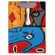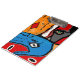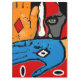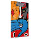 cara e mãos na prancheta azul e alaranjada