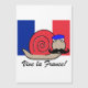 Caracol bonito com bigode e bereta com bandeira francesa para o Dia da Bastilha e as palavras "Vive la France!"