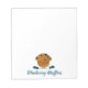 Um bloco de notas com um personagem sorridente de bolinho de mirtilo. As palavras podem ser personalizadas.