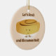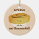 Ornamento com um rolo de canela sorridente que está entre as palavras "Vamos Rock e Cinnamon Roll!". As palavras podem ser personalizadas.