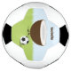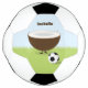 Uma bola de futebol com um personagem sorridente de coco que está em pé com uma bola de futebol. O design também tem um nome personalizável.