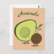 Cartão postal com um desenho animado, abacate e abacate. A palavra "Avocado" pode ser personalizada