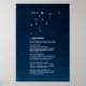 constelação de Aquário com estrela mais brilhante e características num fundo assustado.