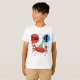 Um grande caranguejo-rei vermelho vestindo um chapéu de festa, balões de aniversário azuis e vermelhos, e confetti é apresentado nesta design de 4 de aniversário.