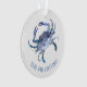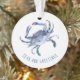 Um presente perfeito para recém-casados ou casamentos de aniversário, este elegante Enfeites de natal acrílico apresenta uma réplica do meu caranguejo azul-aquarela original cercado pelas palavras Seas e Saudações. As palavras Merrily Ever After são colocadas em tipografia escrita à mão branca sobre um fundo azul costeiro no verso. Personalize este ornamento do mar redondo com os seus nomes para criar um guardião único para um presente de Natal. Para mais designs de Victoria Grigaliunas, visite www.zazzle.com/dotellabelle