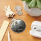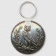 Olhar de cabra de Chaveiro. Imagem digital de um botão antigo de latão com coruja em galho. Presente único para observador de aves ou ambientalista