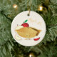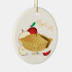 Ornamento com um sorridente personagem de torta de maçã e maçãs.