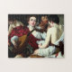 Caravaggio o quebra-cabeça dos músicos. Pintura a óleo em canvas desde 1595. Uma das pinturas as mais impressionantes de Caravaggio, os músicos caracteriza quatro meninos novos que preparam-se para jogar seus instrumentos antes de uma mostra. Um ajusta um alaúde quando outro sentar a vista sobre uma contagem da música ao lado de seu violino. Outro olha sobre quando um músico no fundo escolher uvas verdes para um petisco. Um presente bonito para fãs de Caravaggio, da arte barroco, das pinturas do músico, e da música art.
