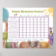 Um gráfico de recompensas com animais safari como girafa, rinoceronte, leão, elefante, hipopótamo, zebra e aquarela.