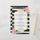 Modelo de Cartão de Menu de Almoço Chá de Noiva Listras Florais Elegantes.