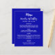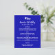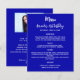Um fundo azul real. Texto branco. Frente: personalize e adicione seu nome, data e menu. Adicione sua própria foto e fatos divertidos sobre a garota de aniversário. Remova os nomes se não for necessário. 1 folha = 1 menu impresso borda a borda.
