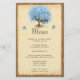 Cardápio de Casamento ou Evento Especial Rústico em Madeira de Celeiro Árvore Folha Coração Azul Pó Claro ou Menu de Ocasão Especial