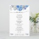 Cardápio de casamento com floral em aquarela azul