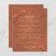 Esses belos cardápios de casamento são simples, elegantes e sofisticados, além de acessíveis e dentro do orçamento. Eles apresentam um design rústico com folhas de aquarela laranja-ferrugem pintadas à mão e caligrafia cursiva em um fundo de terracota marmorizado. Perfeito para um casamento de outono.
