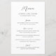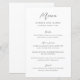 Menu de casamento elegante com um design simples, fonte sans serif moderna e uma fonte script elegante.