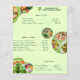 Destaque suas opções veganas mais cobiçadas em um folheto apetitoso e atraente para guiar os clientes pelo seu cardápio e fazer com que explorem facilmente os preços. Isso permitirá que você, como proprietário de um restaurante ou lanchonete, liste suas saladas ricas em nutrientes, proteínas à base de plantas, sanduíches satisfatórios e muito mais. As fotos de comida nutritiva apresentadas certamente farão água na boca e o layout visual é criativamente atraente. Isso é perfeito para comedores conscientes da saúde e amantes de comida vegana que buscam sua próxima refeição sem carne satisfatória. Esse material promocional e de marketing ajuda a mostrar suas deliciosas ofertas, bem como sua marca, por meio do logotipo e nome do seu negócio.