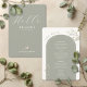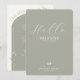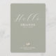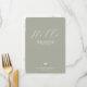 Dê as boas-vindas aos seus convidados de uma forma atenciosa e elegante com este cartão de mesa e menu multifuncional da coleção de casamento Two Are Better Than One. A frente apresenta um fundo verde suave com uma saudação calorosa que diz “Olá” seguido pelo nome do convidado, fazendo com que cada participante se sinta pessoalmente bem-vindo à sua celebração.