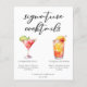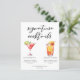 Esta folha de menu de coquetéis sofisticados apresenta tipografia preta simples acima de 2 de seus drinks favoritos e seus ingredientes para o bar de seu casamento à beira-mar. Um desenho chique de Cosmopolitan e Tequila Sunrise adiciona um toque divertido ao seu menu de bar. Completo com os nomes do casal e data da recepção.