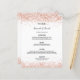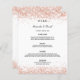 Um cardápio de casamento elegante. Um fundo branco estiloso, decorado com confetes rosa dourada. Personalize e adicione seus nomes, data e o cardápio do casamento.