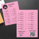Este atraente folheto de Menu de Entrega do Restaurante apresenta um fundo rosa vibrante, criando um clima fresco e artístico que chama a atenção instantaneamente. A fonte preta suave combina com o rosa calmante, evocando sofisticação e calor - perfeito para restaurantes modernos ou cafés aconchegantes.