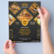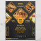 Escolher um design profissional e criativo para um folheto que mostre suas ofertas para ser incluído em seus materiais promocionais como proprietário de uma rede de fast-food ou restaurante, ajudará seu negócio a aumentar seus engajamentos com os clientes e levar a mais vendas. Ao contrário daqueles layouts de design comuns, este folheto apresenta um arranjo visual único de detalhes, perfeito para exibir especialidades culinárias. Com o fundo texturizado preto incorporado, estrutura de formas fofas, seleção de esquema de cores preto e amarelo e as fontes legais usadas, esta ferramenta de marketing tem a estética certa para chamar a atenção dos clientes-alvo. O que é mais interessante é que você pode editar este modelo e personalizá-lo adicionando suas próprias listas de menu, fotos de fast-food, informações de contato da empresa, localização do restaurante, e-mail e site.