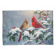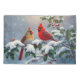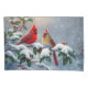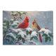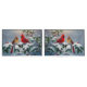 Um par de cardeais vermelhos nortes perch em um galho sagrado coberto de frutas vermelhas e neve.