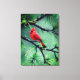 Canvas wall art with beautiful illustration of a Cardinal red bird on the limb of a tree.