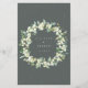 Um cardápio de casamento de três pratos em verde cinza escuro, apresentando uma guirlanda de snowberries pintadas à mão e eucalipto na frente e uma coroa na parte de trás. Todo o texto é totalmente editável, e os pontos espalhados na frente e no verso podem ser excluídos antes de encomendar, se preferir. Por favor, visualize esta Coleção na minha loja para cardápios com arranjos florais alternativos, um número diferente de pratos e em diferentes tamanhos/cores/formatos. Itens coordenados também disponíveis.
