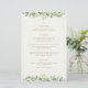 Um menu de casamento de três pratos com creme, apresentando uma borda de snowberries e eucalipto pintados à mão na frente e uma coroa na parte de trás. Todo o texto é totalmente editável, e os pontos espalhados na frente e no verso podem ser excluídos antes de encomendar, se preferir. Por favor, visualize esta Coleção na minha loja para menus com arranjos botânicos alternativos, um número diferente de pratos e em diferentes tamanhos/cores/formatos. Itens coordenados também disponíveis.
