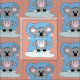 Um tecido bonito para completar projetos infantis com o doce padrão de um urso de cinza com corações cor-de-rosa. Escolha o tipo de tecido mais adequado para o seu artesanato.