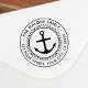 Retorne o carimbo de endereço com dentro de ancoragem náutica com borda radial de ponto e seu nome e endereço em uma fonte moderna de sans-serif. Elegante, estilo mínimo.