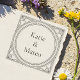 Stamp with effortless, Art Deco elegance using this custom self-inking rubber stamp. The bold geometric border, with its signature fan patterns and linear symmetry, beautifully frames your personalized names (e.g., Katie & Mateo) and address. This efficient stamp delivers thousands of consistently clear, stylish impressions, making it ideal for quickly personalizing envelopes, invitations, and business mail. It combines the undeniable charm of the Jazz Age with modern convenience, adding a distinctive, sophisticated touch to all your communications. A practical and highly fashionable tool for busy couples, event planners, or a thoughtful gift for new homes and stylish endeavors.