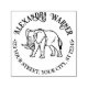Carimbo Auto Entintado Arte Linear de Elefante #2 Nome Redondo Endereço d