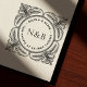 Stamp your mark with an air of classic opulence using this custom self-inking rubber stamp, featuring a magnificent Baroque-inspired border of intricate leaves and flourishes. This opulent design beautifully frames your personalized names, initials, and return address, ensuring every impression is clear, consistent, and effortlessly luxurious. Ideal for quickly personalizing formal invitations, holiday cards, and important correspondence. This durable, pre-inked stamp provides thousands of crisp impressions, saving time while adding a distinctive, personalized touch rooted in historical elegance. A practical tool that brings a touch of grandeur to everyday mailing.
