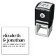 Carimbos de endereço de retorno personalizados para uma maneira fácil de enviar correio! Um design simples com seus nomes em letras maiúsculas e negrito e seu endereço de retorno ou detalhes de contato abaixo em letras maiúsculas. A adição perfeita ao seu correio de casamento! Use para email pessoal, salve as datas, chás de panela, convites para casamento, bolsas favoráveis, obrigado-yous e muito mais! Clique em "Personalizar este modelo" para alterar o texto. Exibir o link de coleta nesta página para produtos semelhantes. Visite nossa loja para mais designs!