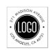 Carimbo de tinta automática preto-e-branco com o seu logotipo e endereço comercial. — ADVICE: ao mudar o logotipo para o seu, certifique-se de usar uma imagem sólida em preto e branco para obter melhores resultados. Se você não tiver uma imagem em preto-e-branco, clique no botão personalizar e adicione uma nova imagem, isso permitirá converter seu logotipo em preto-e-branco. Se tiver alguma dificuldade, por favor contacte-me e farei o meu melhor para o ajudar!