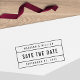 Na moda Salve o Carimbo de Borracha de Data com seus nomes e data em fontes em negrito entre borda de retângulo dividido. Personalize-o substituindo o texto do marcador de posição por suas informações. Para obter mais opções, como alterar a fonte, seu tamanho, espaçamento entre letras ou espaçamento de linha, clique no botão "Personalizar". *Observe que a Marca d'água do Zazzle que aparece na visualização de zoom NÃO aparecerá no produto impresso final. © Rosewood e Citrus