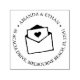 Caro carimbo de endereço de retorno romântico, apresenta o(s) seu(s) nome(s) e endereço de retorno, rodeando uma ilustração de um envelope aberto com um coração de espionagem.