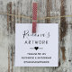 Um selo para seus produtos feitos à mão ou arte. Script e tipografia moderna com informações de mídia social divididas por elemento decorativo do coração.
