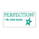 Este inspirador design de carimbo apresenta a mensagem motivacional "PERFECTION!" e o nome de um professor ou educador personalizado. Ele poderia ser usado por um professor, educador ou orientador ao marcar trabalhos, para indicar que um aluno fez bem.