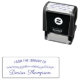 Este carimbo de tinta automática apresenta um elemento decorativo com tipografia moderna e de caligrafia personalizada.