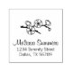 Simples ilustração de uma ramificação cereja florescente com nome personalizado e informações de endereço.