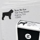 A silhueta de Bouvier des Flandres é o selo de retorno de autoindução. Um selo de borracha de um amante de cachorro divertido para carimbar rapidamente seu endereço de retorno em mensagens pessoais e comerciais. Visite o Doodle World de Jenn para mais selos de raças de cães e produtos temáticos Bouvier.