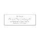 O endereço clássico de volta do casamento é um selo de autoimpressão com uma design simples e minimalista com um toque moderno. Seu sobrenome está em uma tipografia de script elegante e seu endereço em uma fonte serfi tradicional.