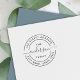 Script de caligrafia moderna Retorna Endereço Carimbo de Borracha Autopicante com borda dupla redonda para seu endereço entre ele e nome em um script de caligrafia de tendência no centro que é fácil de personalizar. Agora você nunca mais precisa escrever seu endereço de novo. Excelente de enviar cartas. Personalize-o substituindo o texto do marcador de posição pelo seu nome e endereço. Para obter mais opções, como alterar a fonte, seu tamanho, espaçamento entre letras e para expandir ou contrair texto curvo, clique no botão "Personalizar". *Observe que a Marca d'água do Zazzle que aparece na visualização de zoom NÃO aparecerá no produto impresso final. © Rosewood e Citrus