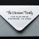 Carimbo de endereço de retorno moderno com o nome da sua família em um na moda em negrito e seu endereço em uma simples tipografia.